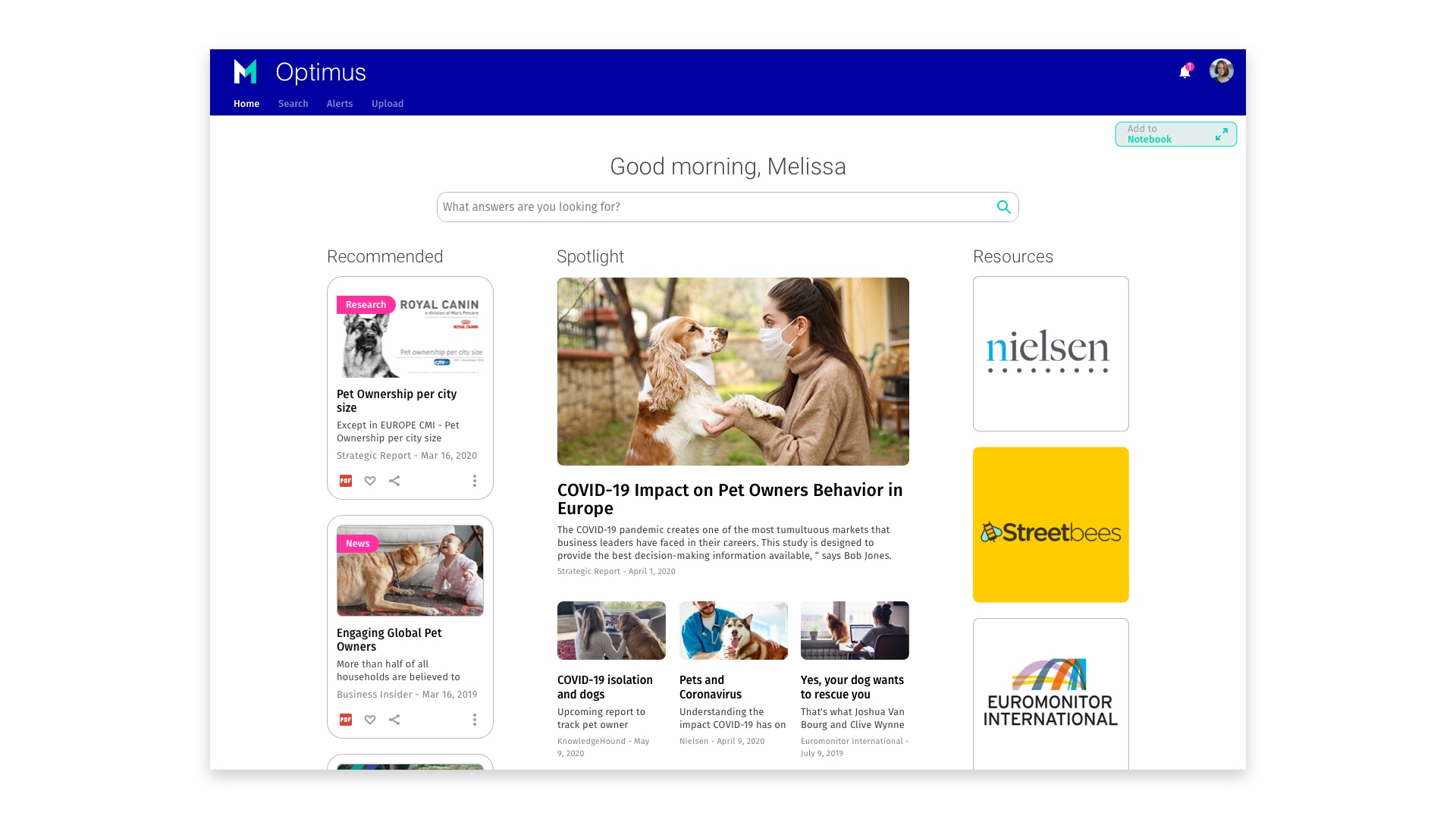 An Insights Engine connects all of their customers' consumer and market data and tools to leverage existing investments. A Digital Insights Workspace enables experts to find and research new insights, and to present these to their businesses in engaging ways. A Business Assistant then equips decision-makers to easily find insights in news, knowledge and reporting.