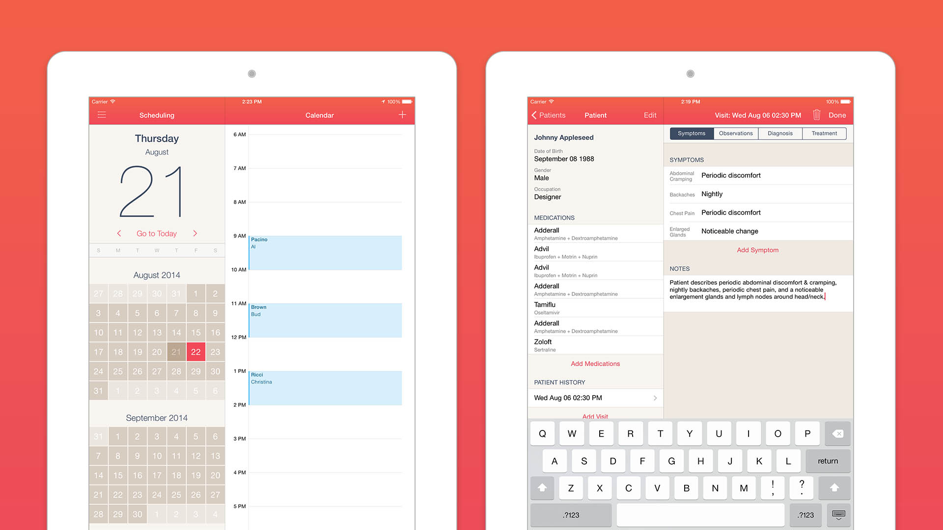 QiNotes (chee-notes) is an iPad-based electronic health record app made for acupuncturists by acupuncturists. Whether in a coffee shop, in the clinic, or at home, QiNotes is ready to go. All of the relevant Chinese-medicine-specific information acupuncturists need to track is provided in an easy and intuitive format.